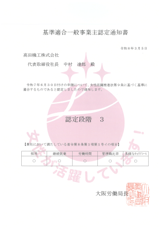 当社は、女性の活躍推進に積極的に取り組む企業として、厚生労働省より「えるぼし認定」を取得しました。